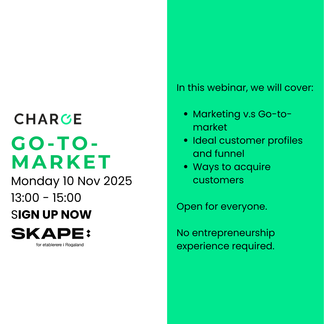 This is part of a free webinar series in collaboration with Charge Incubator, an Oslo-based organization that supports international entrepreneurs in Norway.